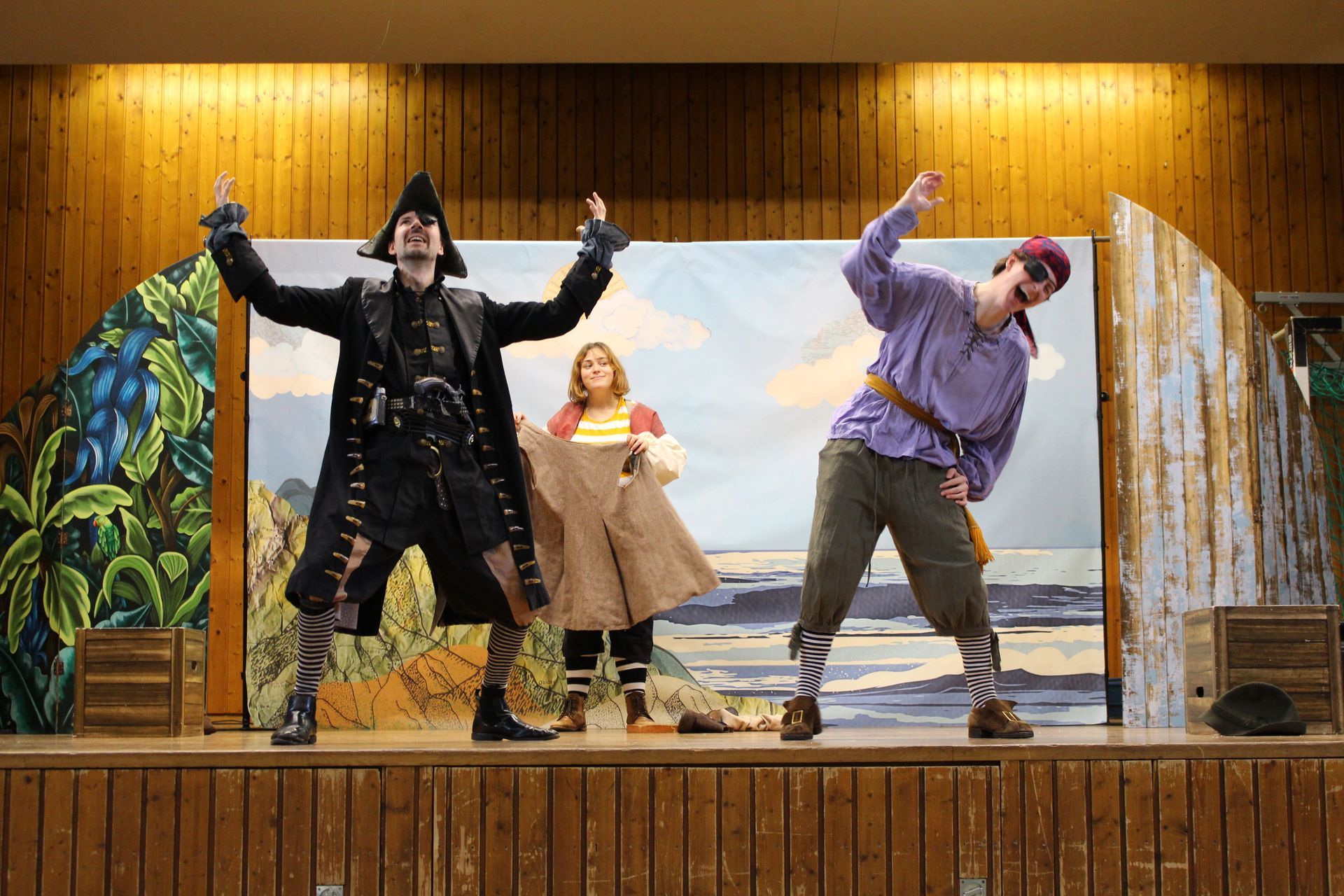 „The Tiger of the Seas“ Für die Klassen 5 und 6 stand mit „The Tiger of the Seas“ ein turbulentes Piratenabenteuer auf dem Programm. Die vier Schauspieler*innen nahmen die Schülerinnen und Schüler mit auf eine wilde Reise voller Humor, Mut und überraschender Wendungen. Die Kinder wurden dabei nicht nur Zuschauer, sondern auch Teil der Geschichte: Sie durften Meeresrauschen nachahmen, gemeinsam Schafsgeräusche imitieren – und sogar ein mutiger Schüler wagte sich auf die Bühne. Das sorgte für viele Lacher und zeigte eindrucksvoll, wie gut die Fünft- und Sechstklässler dem englischen Dialog folgen konnten.