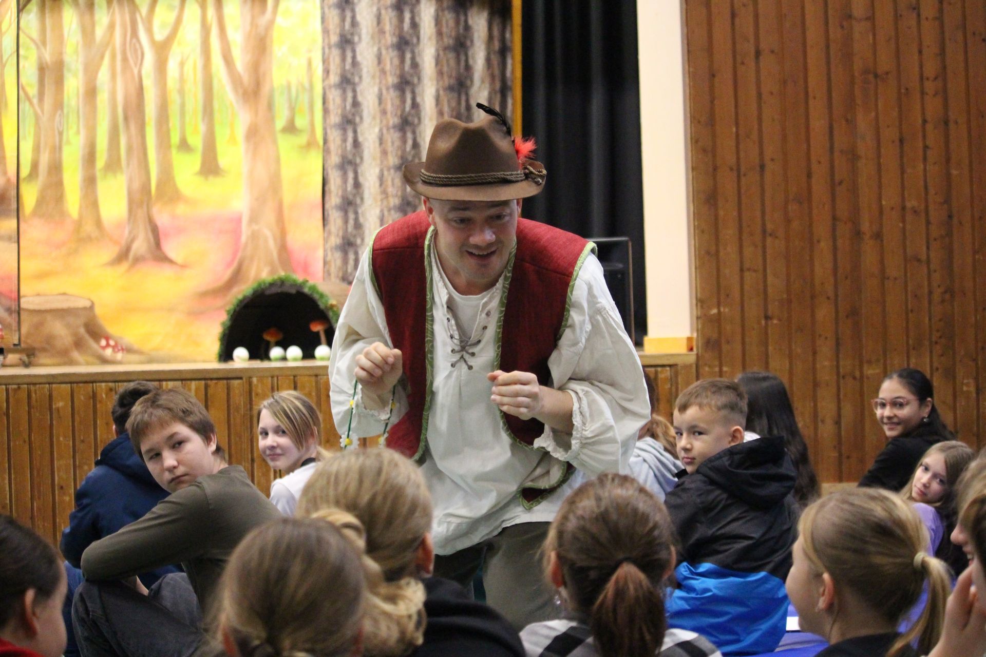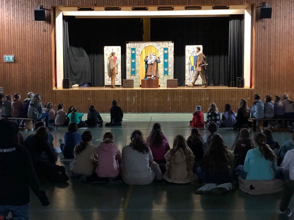 Für vier Stunden verwandelte sich die Mehrzweckhalle unseres Schulzentrums am vergangenen Freitag in einen Theatersaal mit den Klassen 5-6 und der VKL sowie den Klassen 7-9 als Zuschauer. Für Fremdsprachenlerner bietet sich nicht oft die Gelegenheit, mit Muttersprachlern in Kontakt zu kommen. Die Chance wollte sich die Schule nicht entgehen lassen und engagierte das White Horse Theater, eine Truppe aus vier jungen englischen SchauspielerInnen, die derzeit auf Tournee durch Deutschland sind.