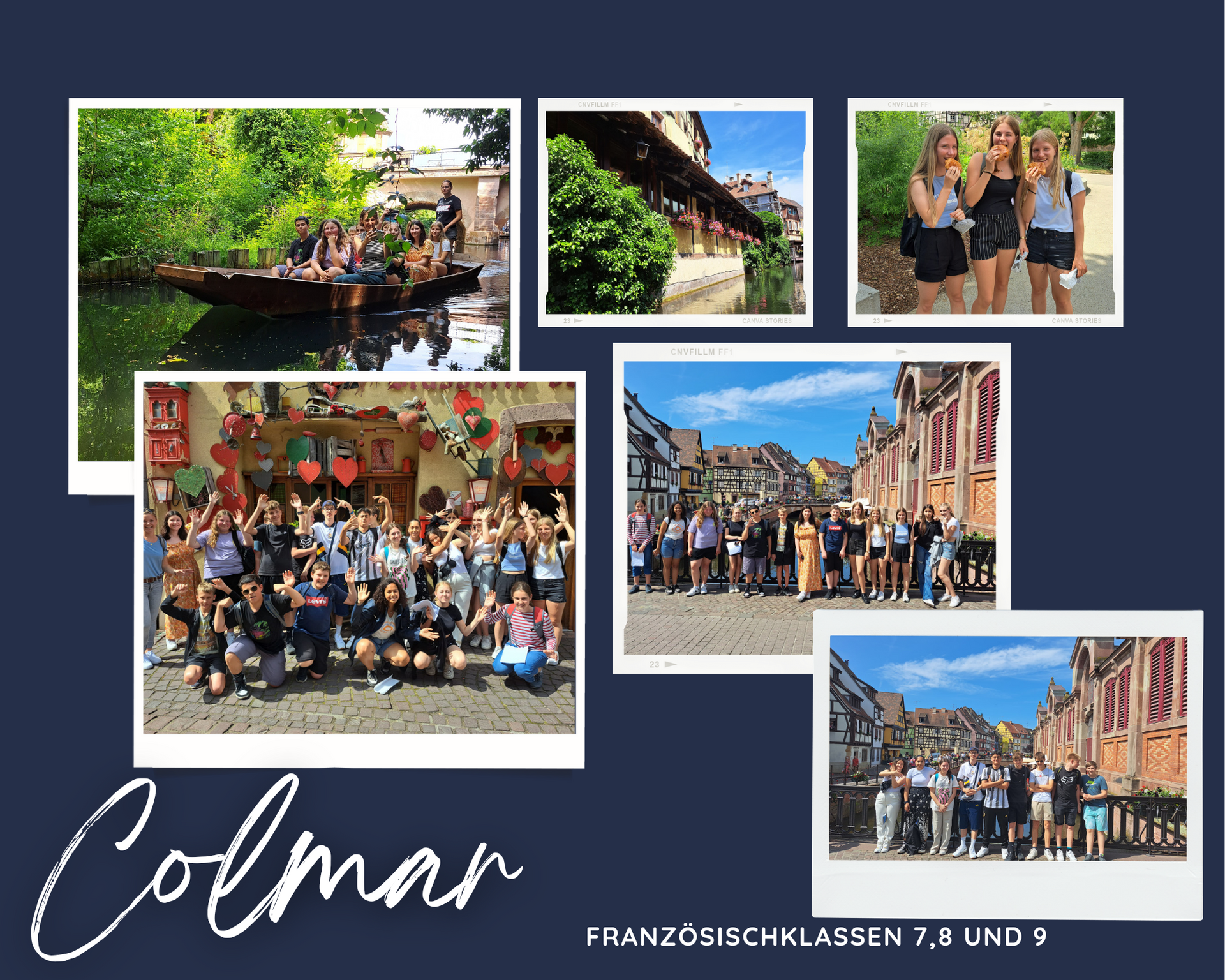 „Vive la France“ hieß es für die FranzösischschülerInnen der Klassen 7, 8 und 9, die am 21. Juni mit Frau Sutter und Frau Weidner im Bus nach Colmar im Elsass/Frankreich fuhren. Dort konnten die im Unterricht erworbenen Französischkenntnisse im Land angewandt werden. Einige bestellten sich ein Pain au chocolat, einen Flammkuchen oder ein Eis. Andere kauften Souvenirs oder Postkarten. Außerdem wurde eine Stadtrallye mit Stadtplan durchgeführt und eine Bootsfahrt auf der Lauch gemacht. Es war ein schöner Ausflug in unser Nachbarland Frankreich!