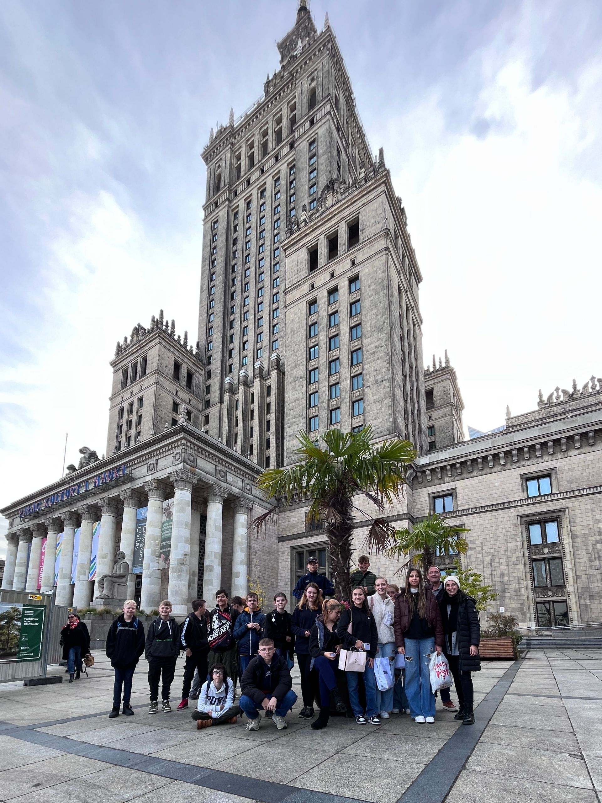 19 SchülerInnen der Klassen 8a und 8b besuchten in der Woche vor den Herbstferien unsere Partnerschule „Torunska“ in Warschau. Nach verschiedenen digitalen Kennenlernaktionen waren im Mai 2023 die SchülerInnen und LehrerInnen aus Polen zu Gast am Schulzentrum. Nun stand der Gegenbesuch in Warschau an. Begleitet von Frau Schultheiß und Herrn Hofmaier erlebte die Gruppe ein geballtes und abwechslungsreiches Programm. Das Nationalstadion, der Palast der Kultur mit seiner Aussicht auf die moderne Skyline Warschaus, die hübsche Altstadt, das Nationalgericht „Pierogi“ und 1000 Jahre Geschichte der Juden im Polin-Museum standen auf dem Programm. Das Wichtigste aber war die Begegnung mit der Partnerklasse. Die SchülerInnen und LehrerInnen zeigten uns stolz ihre Schule, und sie boten uns ein kurzweiliges Programm mit Sport, Tanz und interkulturellem Lernen. Am Freitag ging es wieder auf den Zug von Warschau über Berlin Richtung Heimat. Im Gepäck sind neben einigen Souvenirs viele Eindrücke, neue Freundschaften sowie bleibende interkulturelle Erfahrungen. Nicht zuletzt wurde Englisch intensiv geübt, denn das war die gemeinsame Sprache. „Das war die schönste Woche in diesem Jahr“. (Yaren, 8b)